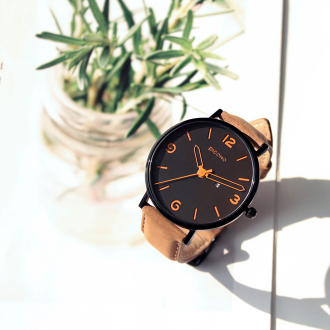 TEEN collection is used dark blue for surface color, the hands and numbers is used bright orange. The strap is made from genuine leather. TEEN collection is a very strong compared watch, that also show up men’s optimistic and gentlemen.